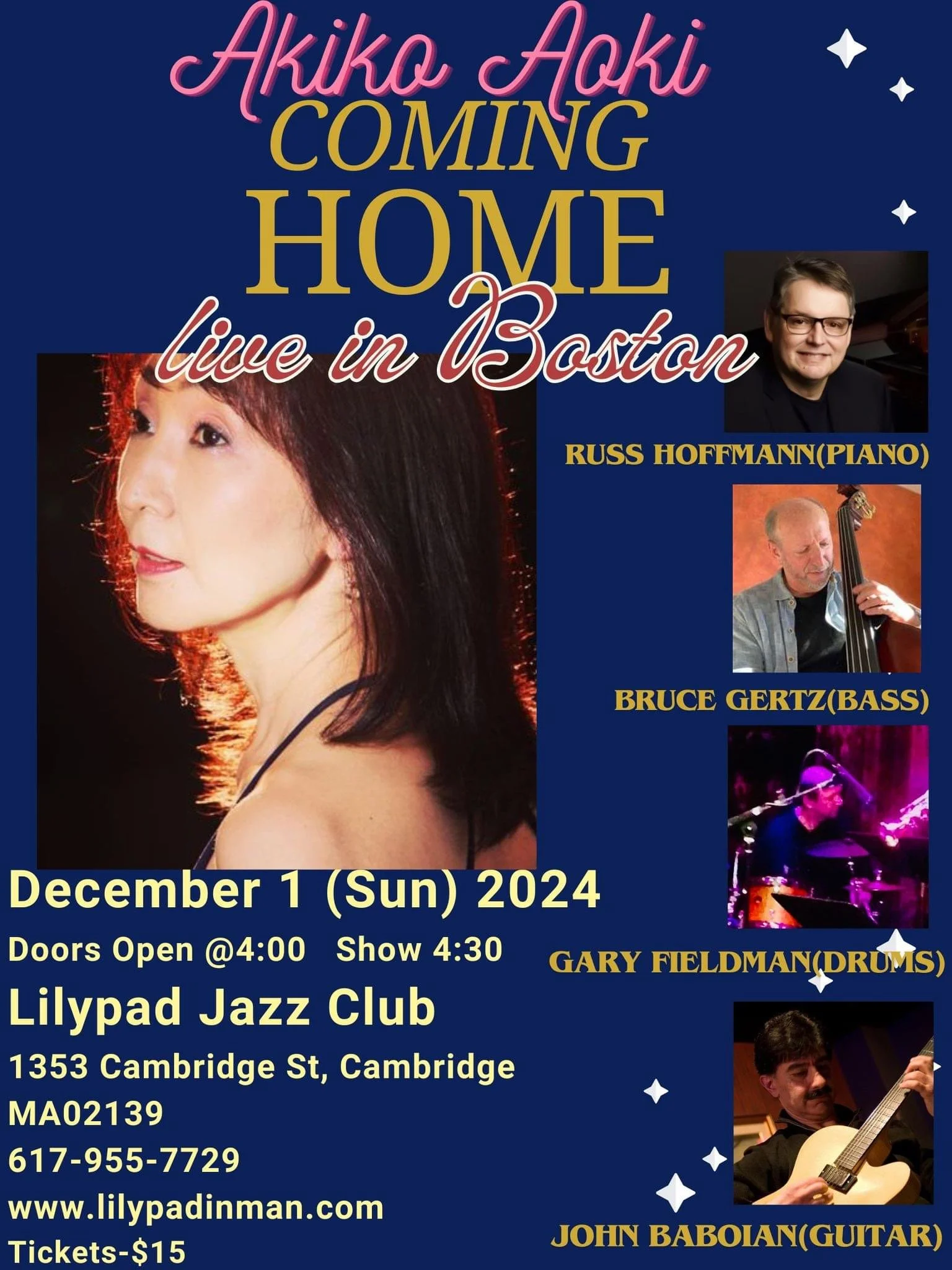 Akiko Aoki is a professional singer, voice instructor and Japanese teacher. Known for her jazzy phrasing and pitch control, she is an experienced and solid vocalist. Akiko's flexible character with a sense of warmth and humor, is one that encapsulates the audience. Born in Morioka of Iwate prefecture in Japan and moved to Sendai of Miyagi prefecture at the age of 3. There, she received vocal training in various chorus groups in her elementary, junior and senior high years in Japan. It was during her youth that she said to herself, "I could spend all day singing without ever getting bored". As she carried this thought with her, At age of 16, she won the chances to perform on the TV shows "NHK Nodo-Jiman" and "Star-Tanjo-(meaning Star in born) the following year. A few years later, at age of 19 Akiko would begin her professional singing career at Jazz clubs and lounges in Sendai and Yokohama Japan. Booked almost daily, she sang around six nights a week in various styles such as American pops, Jazz, and Japanese pops. Akiko would later attend Berklee College of Music on a scholarship in 1986. She took voice with some great instructors such as Jan Shapiro, Maggie Scott, and Anne Packham and piano lesson with Yuki Arimasa and Bob Winter.