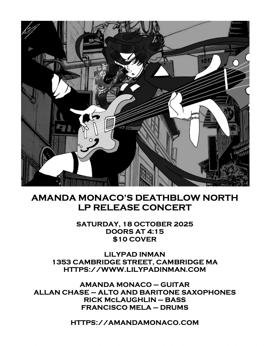 Join Jazz Guitarist and Berklee Professor Amanda Monaco to celebrate the release of her new LP Deathblow North, followed by a set by the Sam Spear Band.