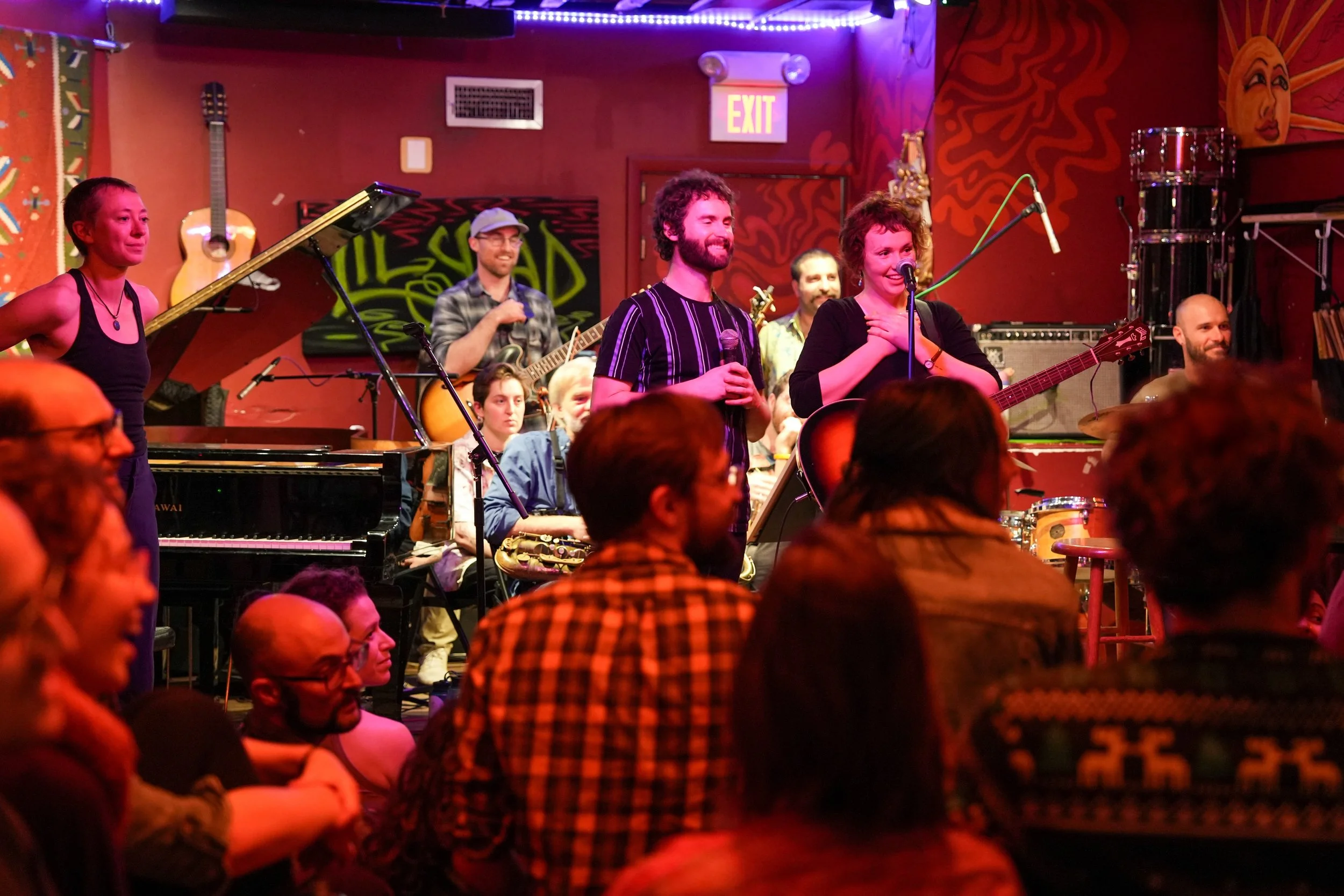 This event lends a structure to receive the beauty of songwriters in a more intimate, immediate, and expressive way than we do most of the time. The musical palate depends on the songwriter gracing the stage! We’ve had everything from R&B to folk, rock n roll and to sea shanties and punk rock. The band features a wonderful rhythm section with some lovely saxophone, violin, and more surprises. After hosting several events in living rooms around the city, The Songbuilders' Soirée came to the Lilypad in November of 2024, bringing together one beautifully wild one-time ensemble. Founded in 2023 by Milly Roberts and Nate Shaffer, their leadership will foster an ecstatic experience beyond your wildest expectations.