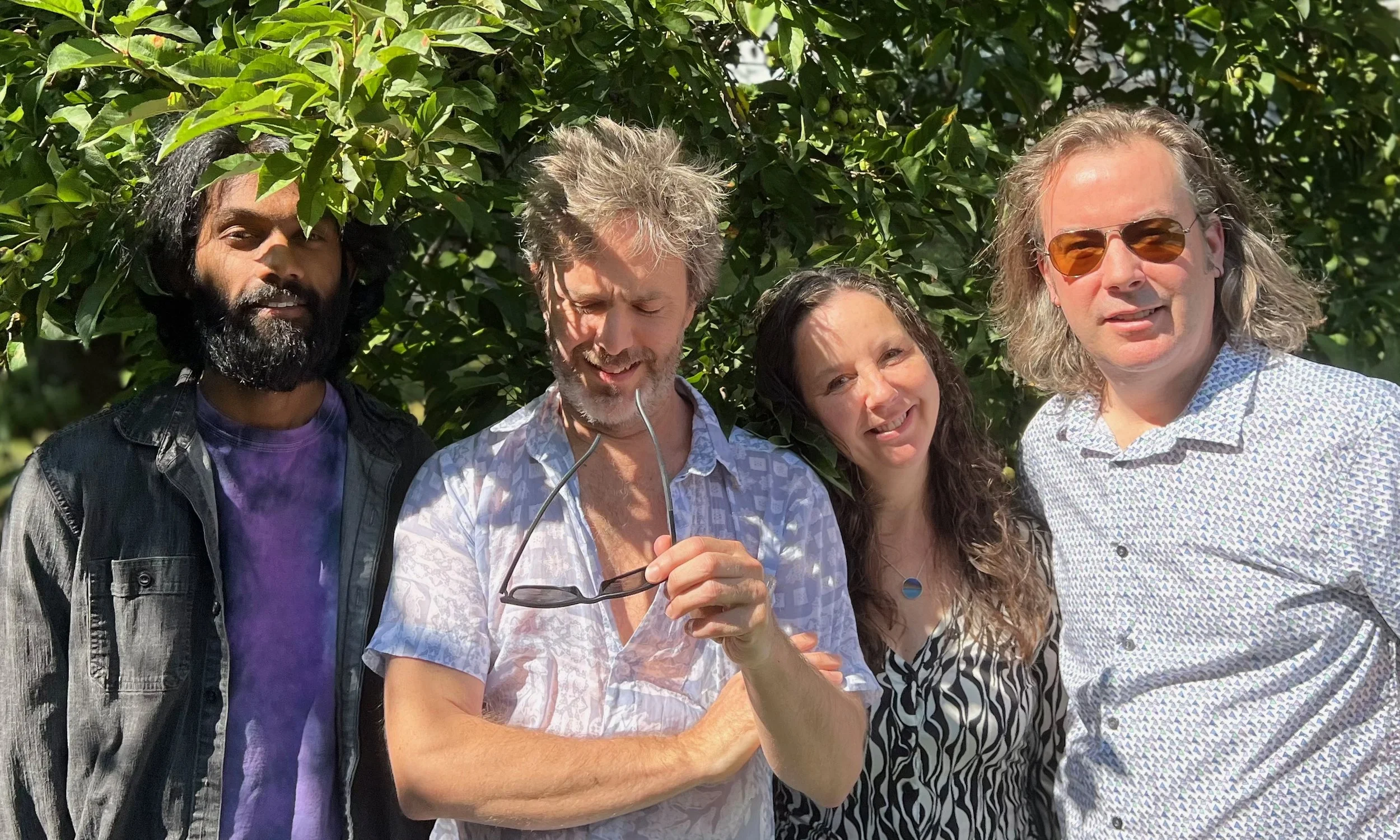 In between the cracks of the musical Rust Belt, Columbus, Ohio’s Moviola has quietly—FOR 30 YEARS—produced an expansive catalog, with (now) 11 records and countless 7” inch singles, a radio show, and a concert film to their name, spanning everything from 4-track fuzz-pop to hi-fi country soul. With five equal singers and songwriters—the whole is greater than the parts, democratic ideals, fucking Gestalt theory in action. Recording themselves, in studios that they built themselves. Writing and performing fully fleshed concert films. As much prankster art collective as…band. Some parallel universe Midwestern EGOT stuff, right there. A small cadre of supportive labels, writers and fans have followed along for the ride. This August, they return with record #11, Earthbound, their first on Kingston, New York-based Dromedary Records.