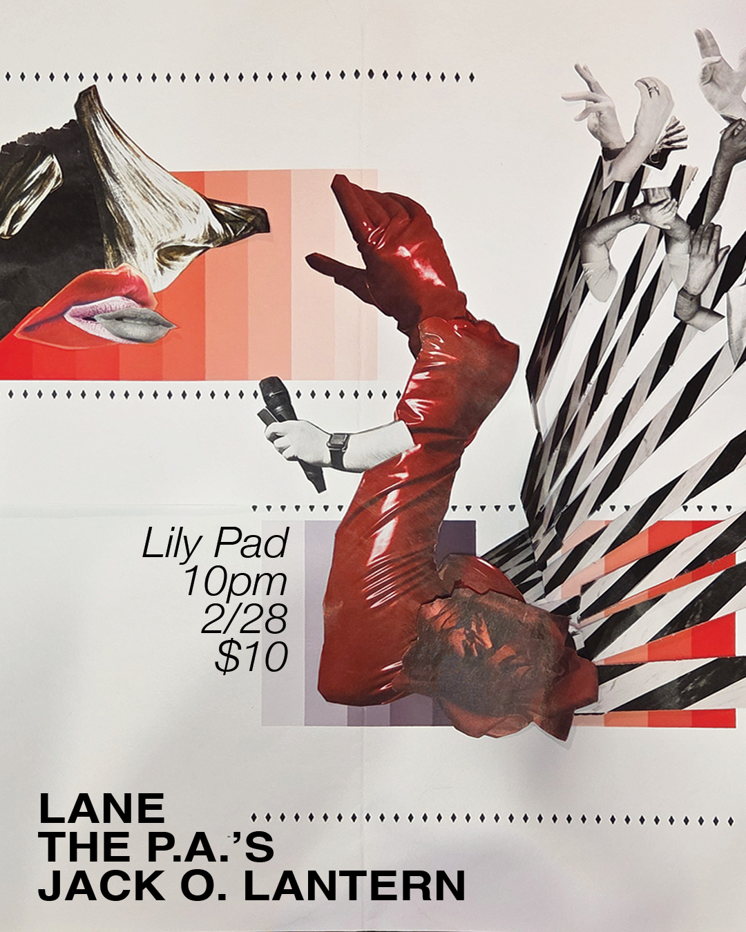 Lane / The P.A.'s / Jack O. Lantern Saturday, February 28, 2026 10:00 PM 11:59 PM 22:00 23:59 The Lilypad 1353 Cambridge Street Cambridge, MA, 02139 (map) Google Calendar ICS $10 cover / 10pm doors / standing Lane Scream by Lane The P.A.'s Scryer by The P.A.'s Jack O. Lantern It's Churro Time by Jack O Lantern