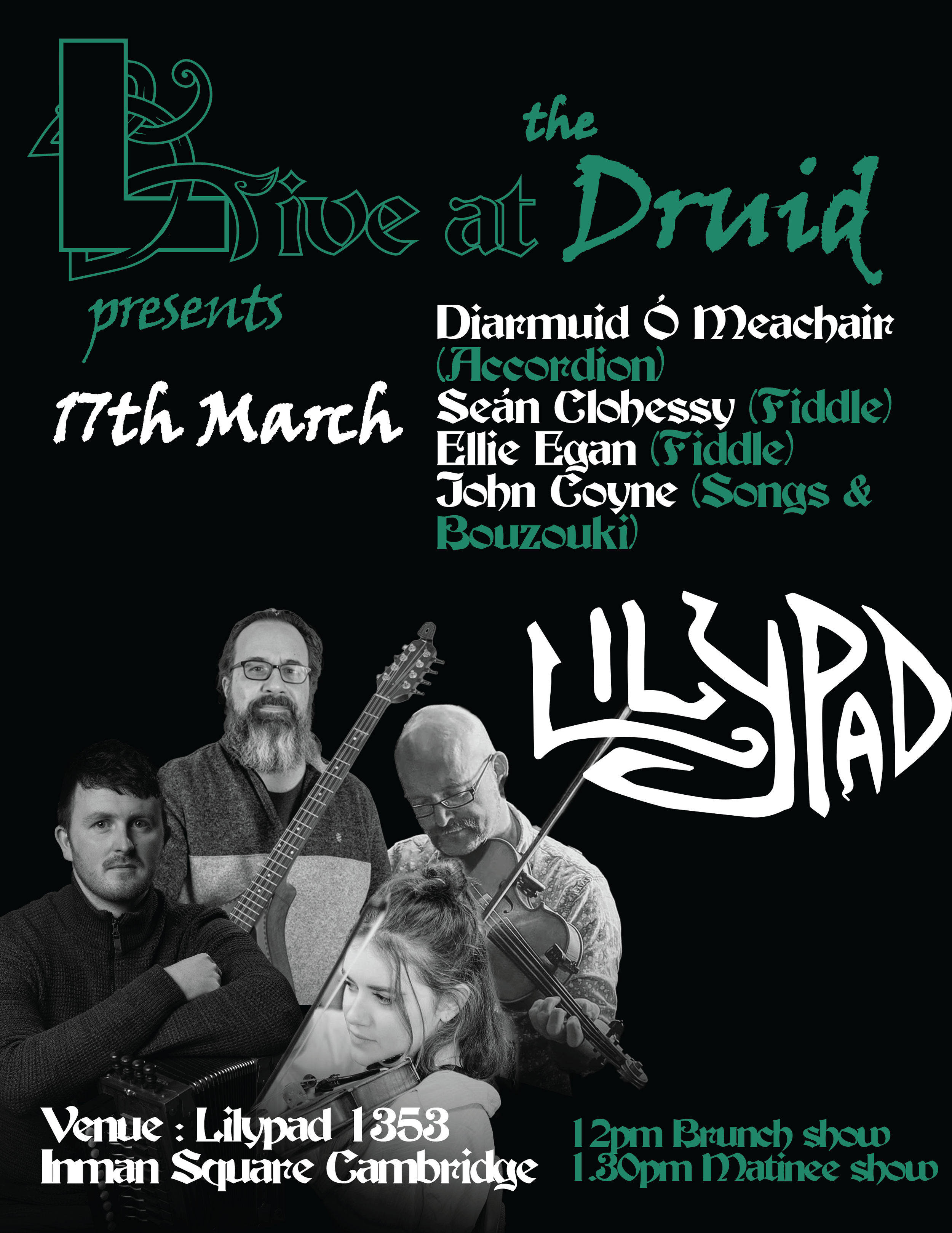 Featuring music from Diarmuid Ó Meachair (Accordion), Seán Clohessy, Ellie Egan (Fiddles) and John Coyne (Bouzouki & Songs).
